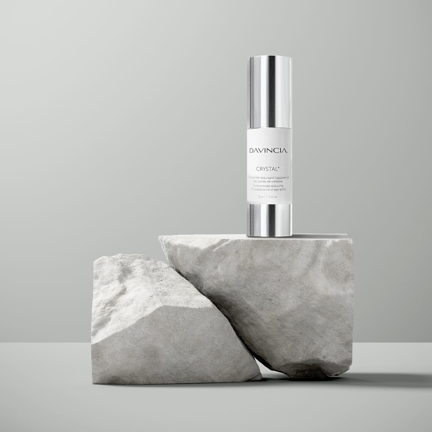 Idéal pour uniformiser et illuminer le teint, le concentré Crystal™ atténue l’apparence des taches brunes et réduit les signes du vieillissement. Entièrement naturel, il ne contient ni hydroquinone ni agents blanchissants. Anti-taches et dommage causé par le soleil et le vieillissement 100% naturel et efficace